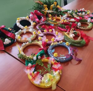 Celem spotkanie było nie tylko kultywowanie pięknych zwyczajów, ale przede wszystkim inspirowanie do twórczego działania. Podczas tworzenia świątecznych stroików panowała wspaniała, radosna atmosfera. Widać było, jak wiele serca i pasji uczestnicy włożyli w swoje prace – każda z nich była wyjątkowa.