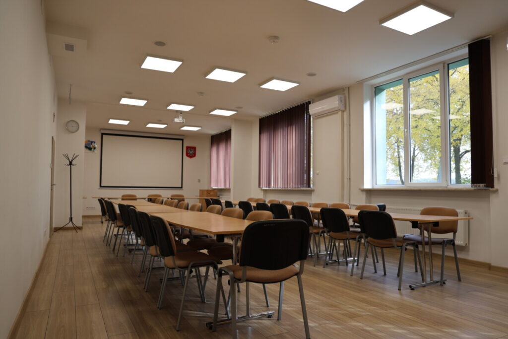 Projektor, krzesła, stoły, mikrofon bezprzewodowy, Internet Wi-Fi, klimatyzacja