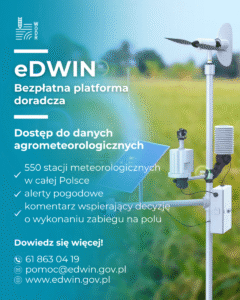 Dzięki usłudze dostępu do danych meteorologicznych w bezpłatnej aplikacji eDWIN nie tylko sprawdzisz bieżące parametry pogodowe, ale też otrzymasz informację wspierającą podjęcie decyzji o przeprowadzeniu czynności agrotechnicznej.